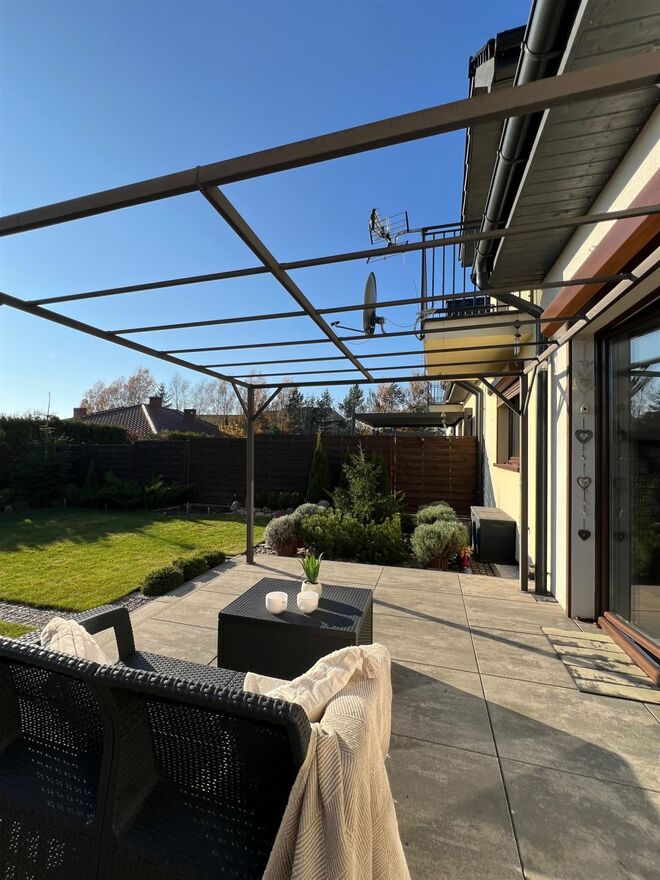 Dom wybudowany w 2021 r oku, bez podpiwniczenia, w technologii tradycyjnej, z użytkowym poddaszem i ocieplonym strychem( izolacja pianą poliuretanową obecnie pełni funkcję schowka)
